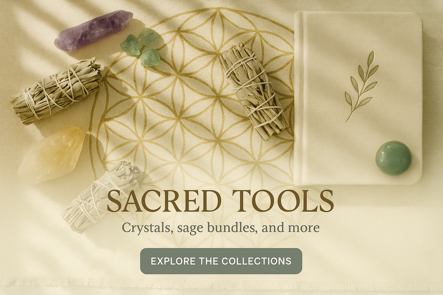Explore all of our collections — each one created with sacred intention to nurture your body, mind, and spirit. From healing crystals and altar tools to journals and candles, every piece is chosen to support your journey of remembrance and self-connection.